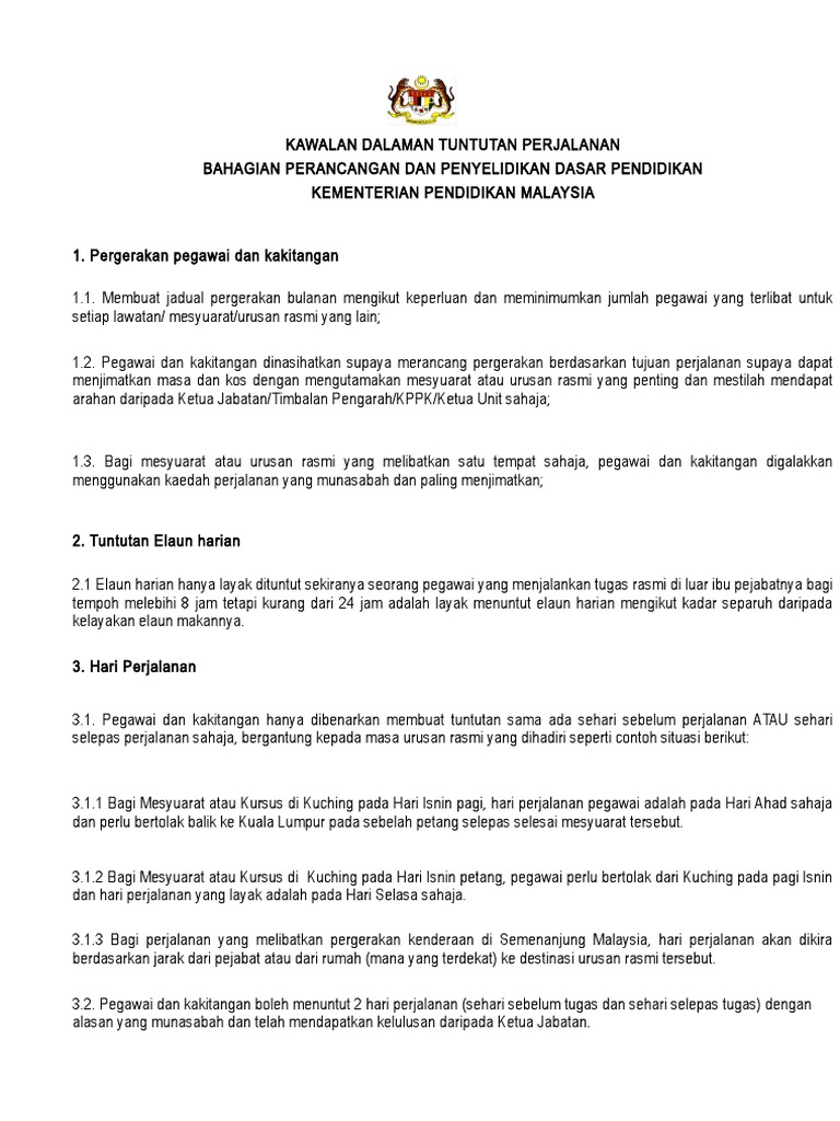Cop rasmi jabatan bagi permohonan kemudahan perlindungan insurans kesihatan di luar negara atas urusan persendirian borang tersebut perlu dihantar ke pejabat canseleri. 3 311 Sila kemukakan tuntutan perjalanan yang telah lengkap jika berkaitan kepada Pejabat Canselori dalam tempoh 1 Bulan selepas bertugas rasmi ke luar negara. Setiap penjawat awam yang ingin ke luar negara atas urusan peribadi atau pun tugas perlu mengisytiharkan tindakan mereka.