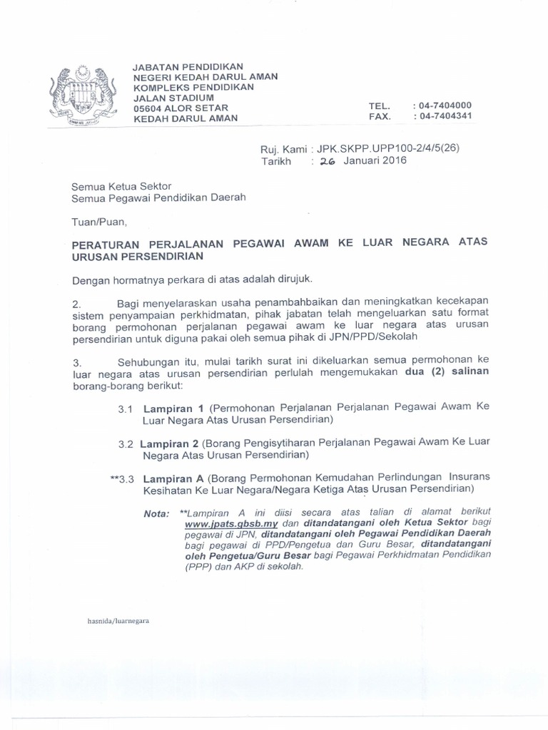 Permohonan Perjalanan Pegawai Awam Ke Luar Negara Atas Urusan Persendirian Surat Pekeliling Borang Permohonan Mykssr Com
