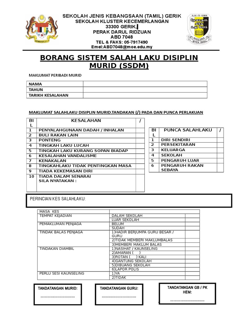 Sistem salah laku disiplin murid ssdm new 1. 251 Ibu bapa penjaga yang bercadang untuk menukar persekolahan murid-murid perlu memaklumkan pihak sekolah dan mengisi borang permohonan pertukaran sebelum mengambil sebarang tindakan. Laporan Kes Kesalahan Disiplin Murid.