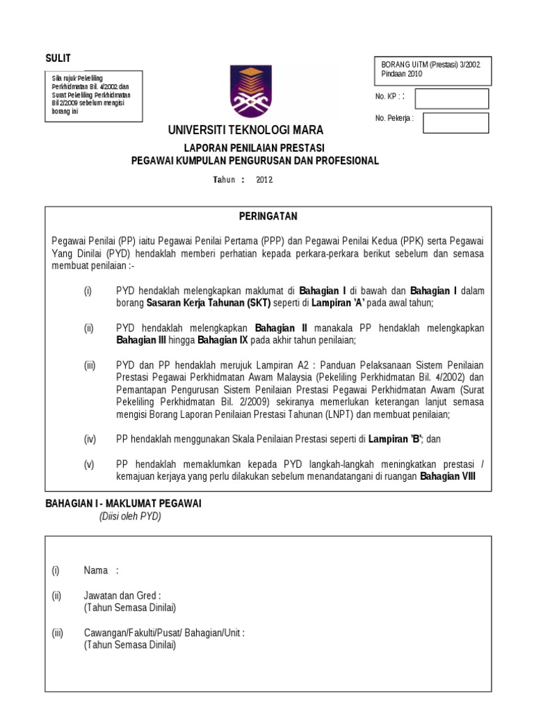 Borang Lnpt 4 2002 Sok I 2 Doc Sulit Borang J P A Prestasi 4 2002 No K P Kerajaan Malaysia Laporan Penilaian Prestasi Pegawai Kumpulan Perkhidmatan Course Hero. Pengendalian Laporan Penilaian Prestasi Tahunan.